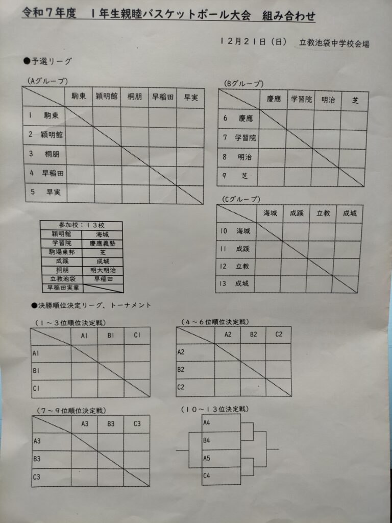 都内の私立中学13校が集まって一年生だけの親睦大会を行う。